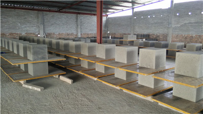 Blokas / plyta / klotuvas, pagamintas iš šios visiškai automatinės blokų mašinos, kur jie bus naudojami